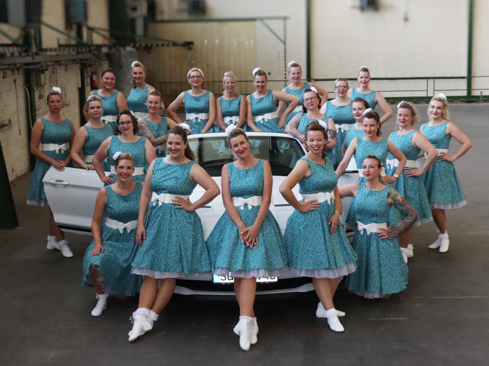 Noch zum Tanz in den Mai standen alle in ihren mir bekannten bunten Kleidern auf der Bühne. Aber irgend etwas war da im Gange … ich musste also besonders aufmerksam sein. Und siehe da, wie recht ich doch hatte: Kurz vor den Sommerferien gab es für alle Hüpfdohlen einheitliche Shirts und Jacken von der DEG Bonn. Niederlassungsleiter Dennis Marner hat es sich nicht nehmen lassen, die neuen Outfits zu übergeben.